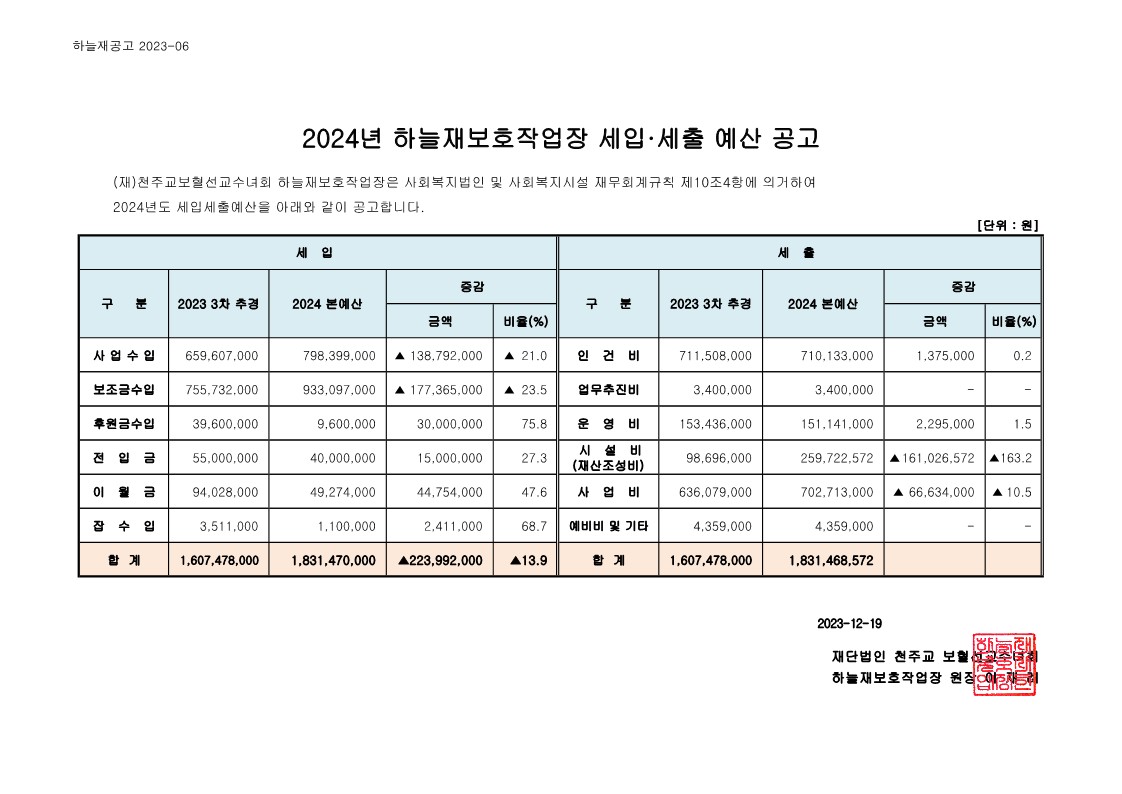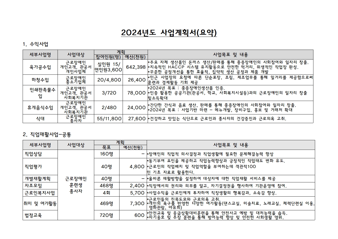 2024³â ¿¹»ê, »ç¾÷°èȹ¼(¿ä¾à) °ø°í