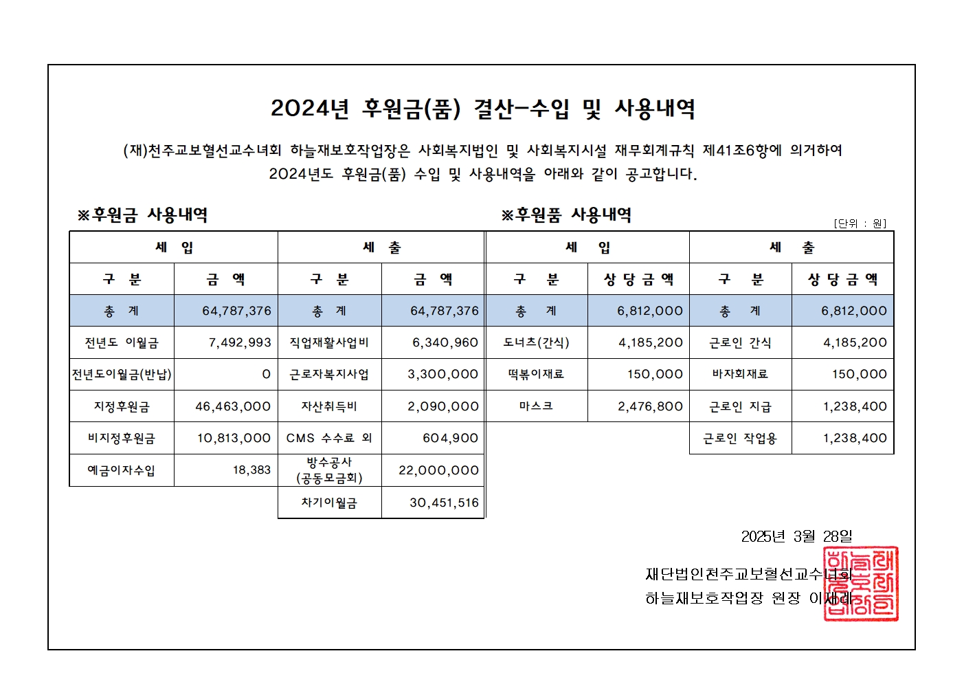 2024³â ÈÄ¿ø±Ýǰ °á»ê °ø°í
