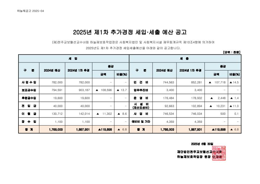 2025³â ÇÏ´ÃÀç 1Â÷ Ãß°æ ¿¹»ê°ø°í