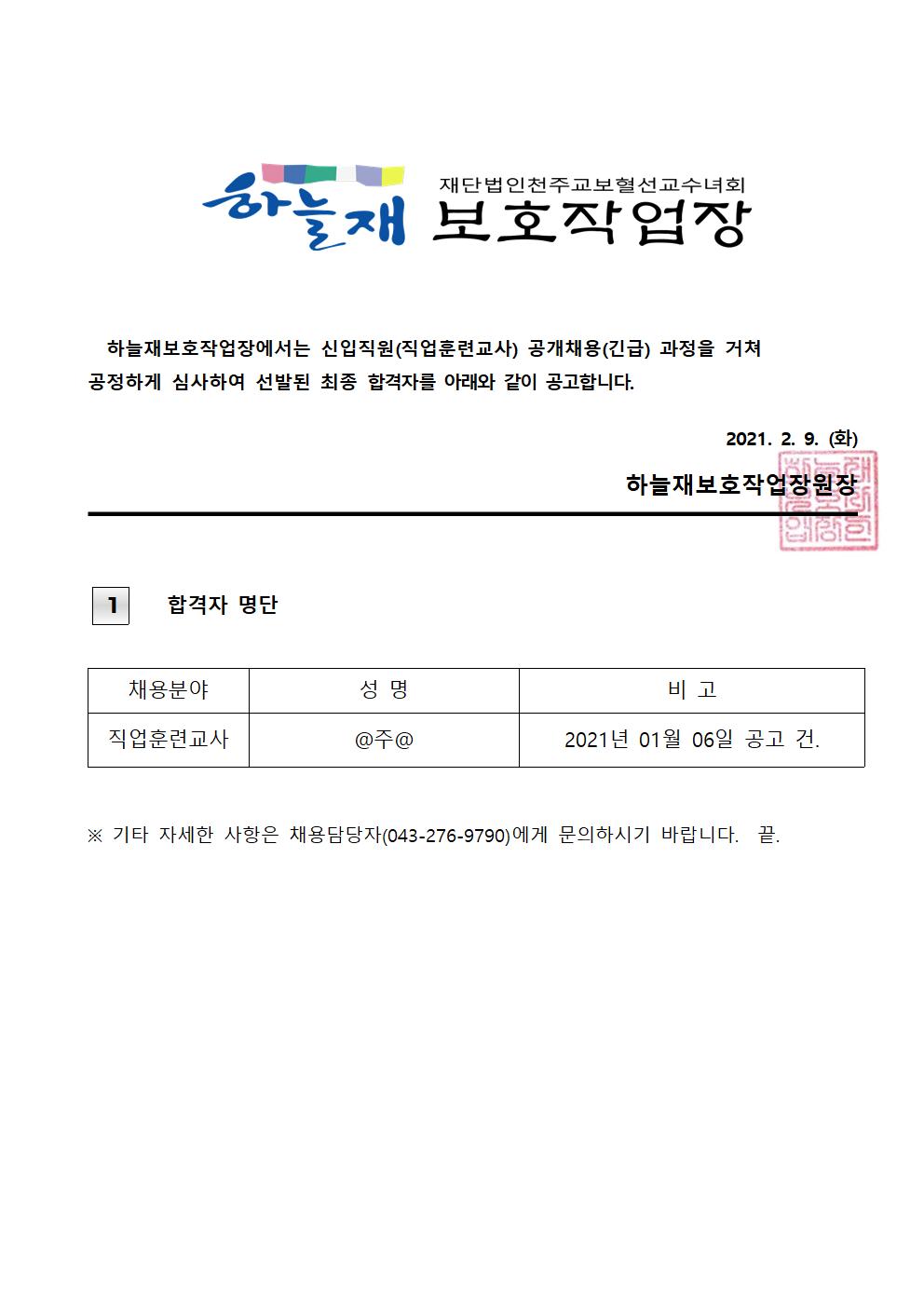 Á÷¿ø °ø°³Ã¤¿ë ¿Ï·á °ø°í-1¿ù6ÀÏ °ø°í °Ç