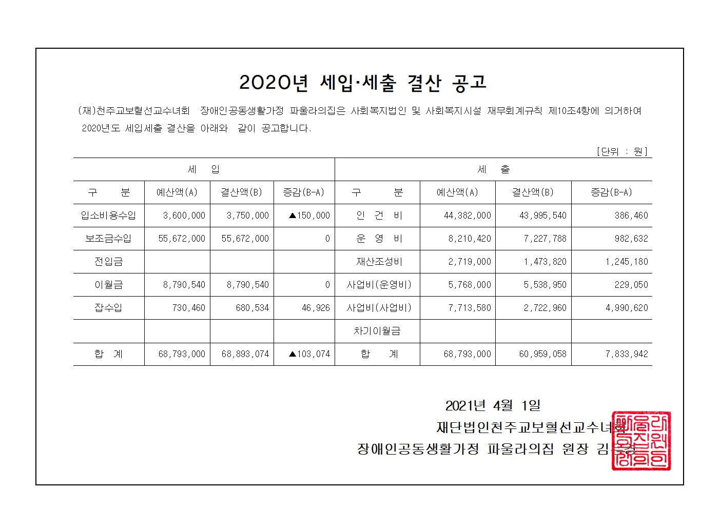 ÆÄ¿ï¶óÀÇÁý 2020³â °á»ê°ø°í