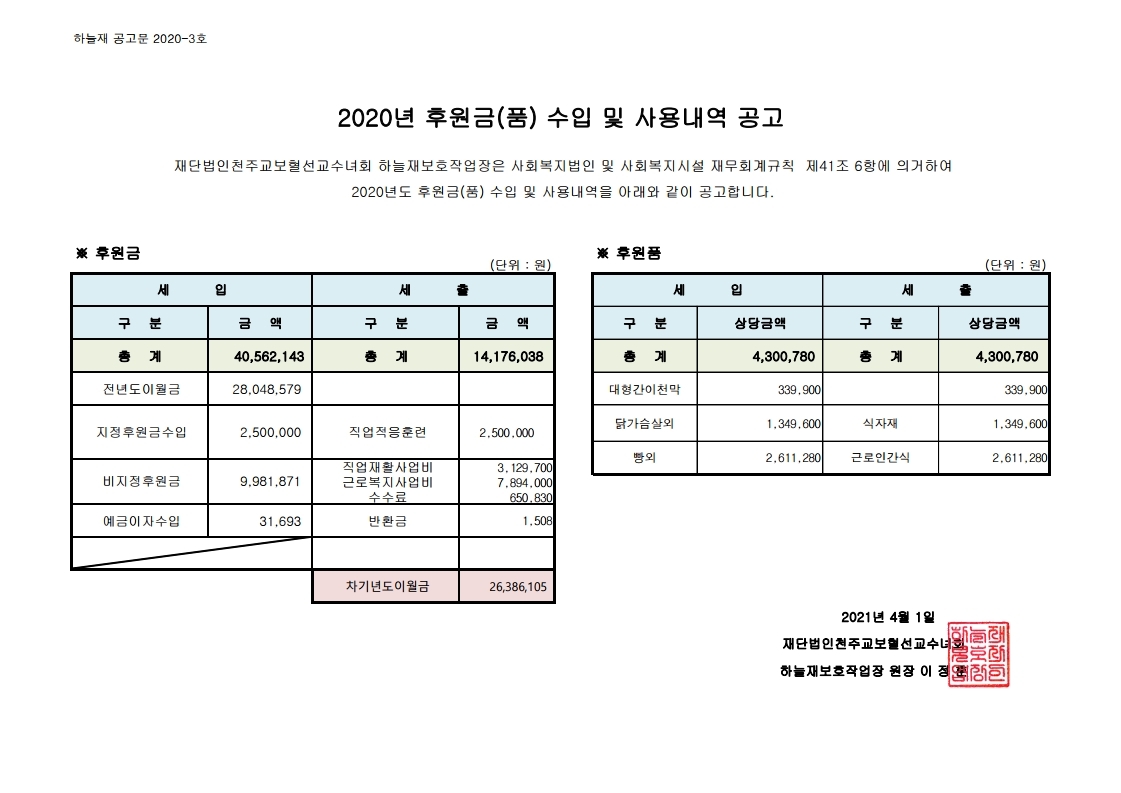 ÇÏ´ÃÀ纸ȣÀÛ¾÷Àå 2020³â ÈÄ¿ø±Ý °á»ê°ø°í