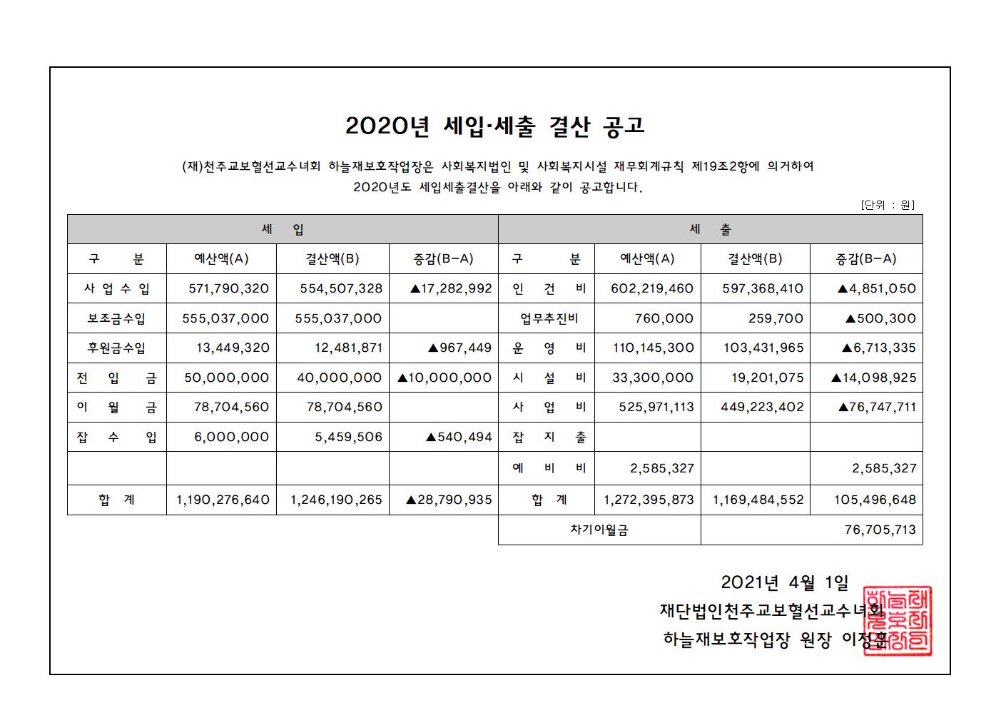 ÇÏ´ÃÀ纸ȣÀÛ¾÷Àå 2020³â °á»ê°ø°í