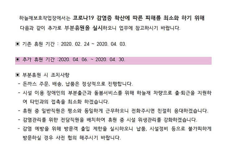 Äڷγª19´ëÀÀ À§ÇÑ ºÎºÐÈÞ¿ø ¾È³»