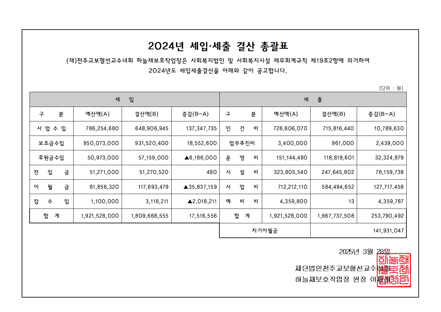 2024³â ¼¼ÀÔ¼¼Ãâ °á»ê °ø°í